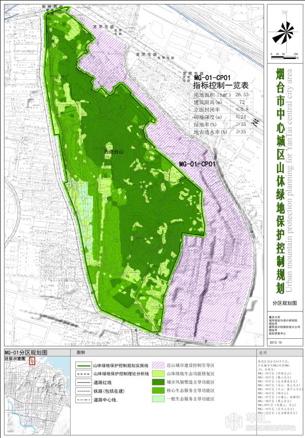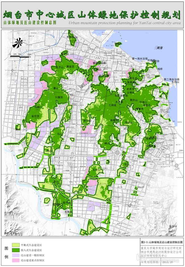 本項(xiàng)目以煙臺(tái)市中心城區(qū)蓁山、塔山、岱王山及周邊約60平方公里山體為規(guī)劃對象,兼顧約10平方公里的近山建設(shè)用地。綜合應(yīng)用地理信息系統(tǒng)(GIS)、衛(wèi)星遙感(RS)技術(shù),提出城市山體保護(hù)控制綠線的數(shù)量化識(shí)別方法,構(gòu)建山體綠線及近山建設(shè)用地管控的數(shù)量化指標(biāo)體系、制定系統(tǒng)化山地綠線管控圖則、設(shè)計(jì)山體綠線管理實(shí)施詳案。