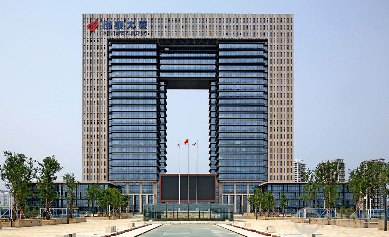 項(xiàng)目位于煙臺(tái)市煙臺(tái)CBD科技高新區(qū)的A區(qū),為高新園區(qū)重要核心建筑,兼顧高新區(qū)管委會(huì)辦公用房。規(guī)劃布局將其設(shè)置于核心景觀動(dòng)力軸中心,是整個(gè)園區(qū)的點(diǎn)睛之筆。創(chuàng)業(yè)大廈設(shè)計(jì)突出“創(chuàng)業(yè)之門(mén)”的設(shè)計(jì)理念,整體建筑呈簡(jiǎn)潔方整的“門(mén)”形。本工程結(jié)構(gòu)高度127.5米,地上建筑最高點(diǎn)為132.6米,為復(fù)雜高位大跨連體結(jié)構(gòu)。項(xiàng)目全方位引入綠色設(shè)計(jì)理念,在總圖布局、建筑單體的被動(dòng)式能源利用、建筑節(jié)能設(shè)備、職能配套和建筑材料節(jié)能“空中花園”的辦公模式引入等多個(gè)角度,打造新時(shí)代的綠色辦公建筑。