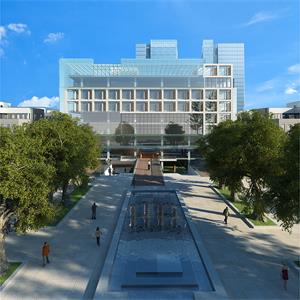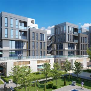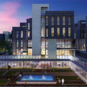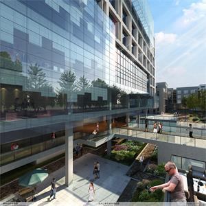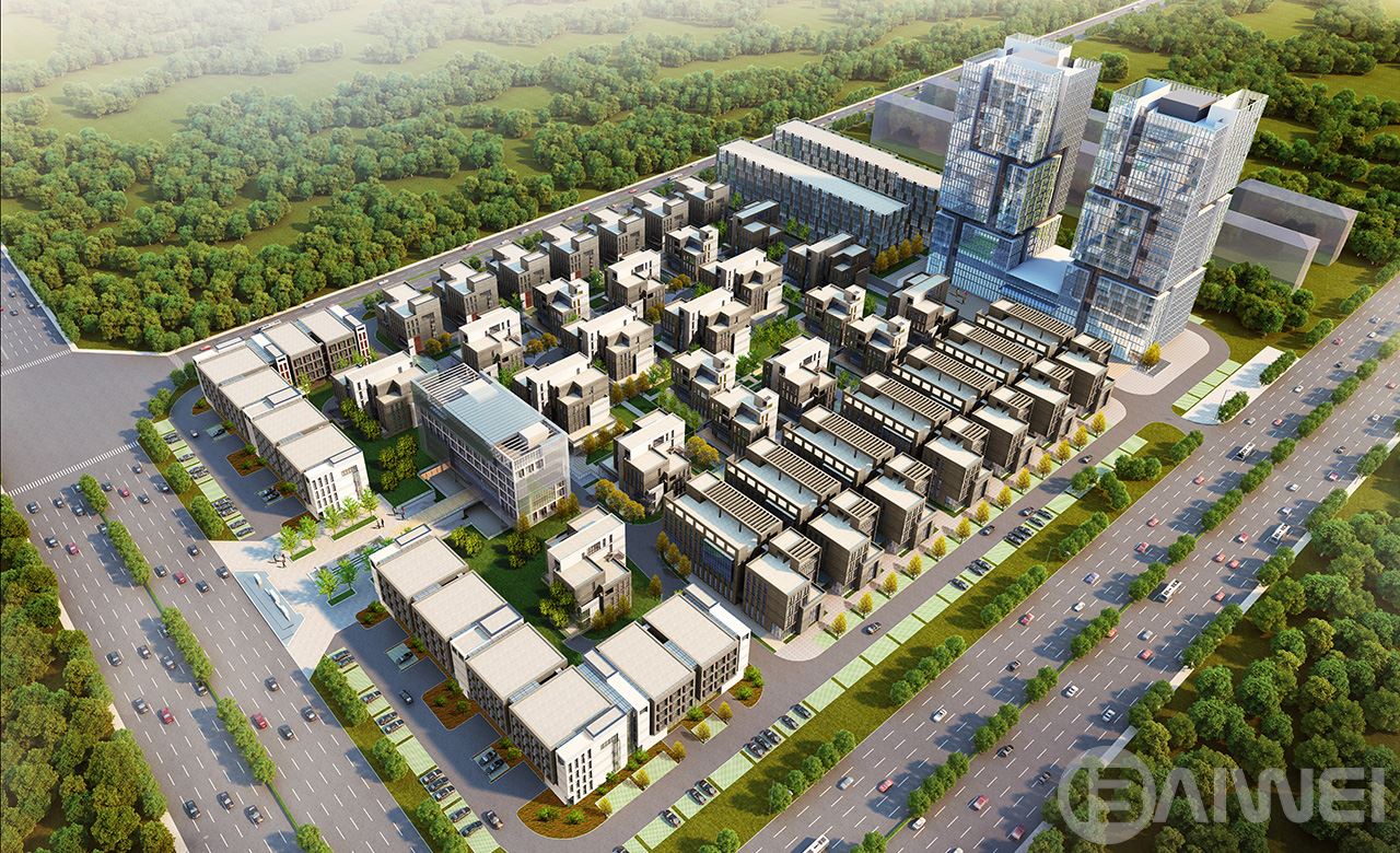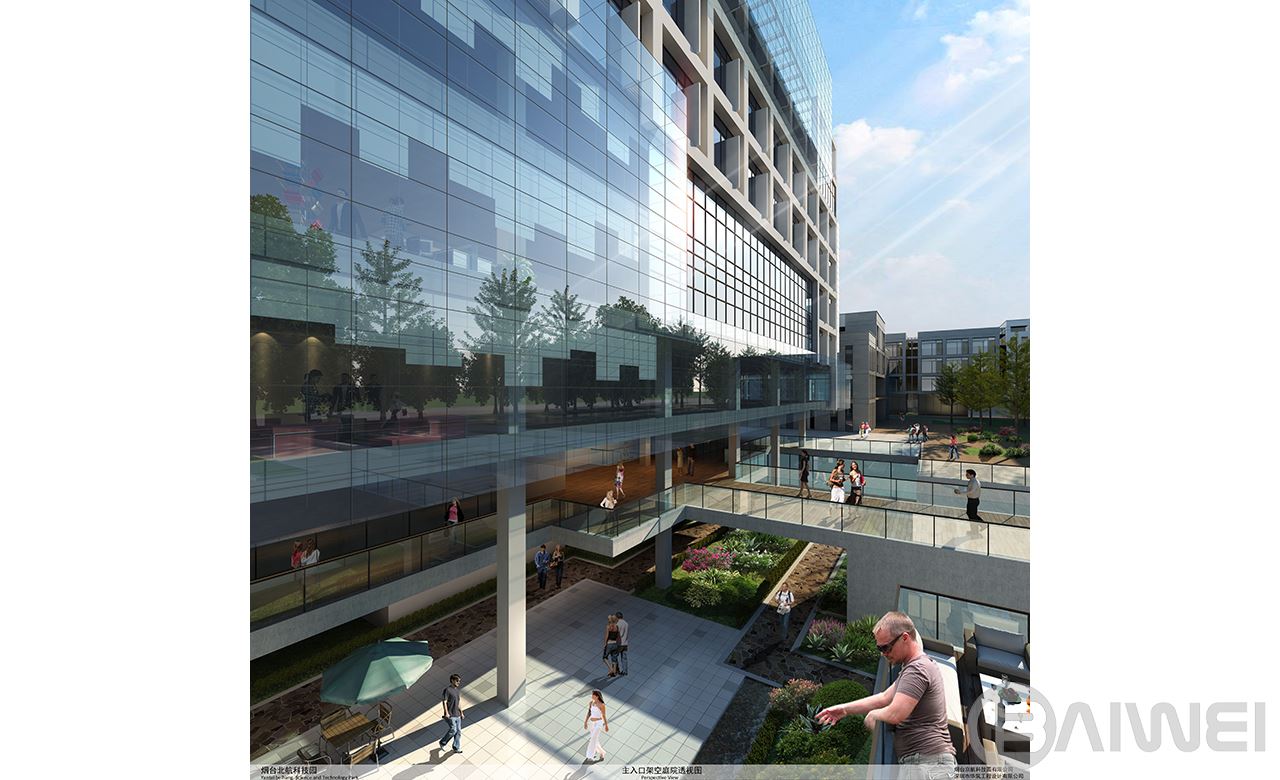 整個項目采用現(xiàn)代的設(shè)計手法。為了避免通常的科技園區(qū)由于大量且均勻排布的單體建筑形成園區(qū)單調(diào)、刻板的形象,在不影響使用的前提下,在單體的形象設(shè)計上沒有將多層戊類廠房設(shè)計成一個個簡單的盒子,而是通過一系列形體上的變化,使之具有較為個性的視覺特征,并在規(guī)劃布局上采用交替錯落的排布手法,并結(jié)合下沉廣場的設(shè)置,使整個園區(qū)富有趣味性。豎向條形窗與幕墻的交替排布,白色和深灰色的體塊相互咬合,并在體塊交接的位置形成局部的退臺以及挑出,使得單體建筑的體塊具有整體且不呆板的視覺效果。