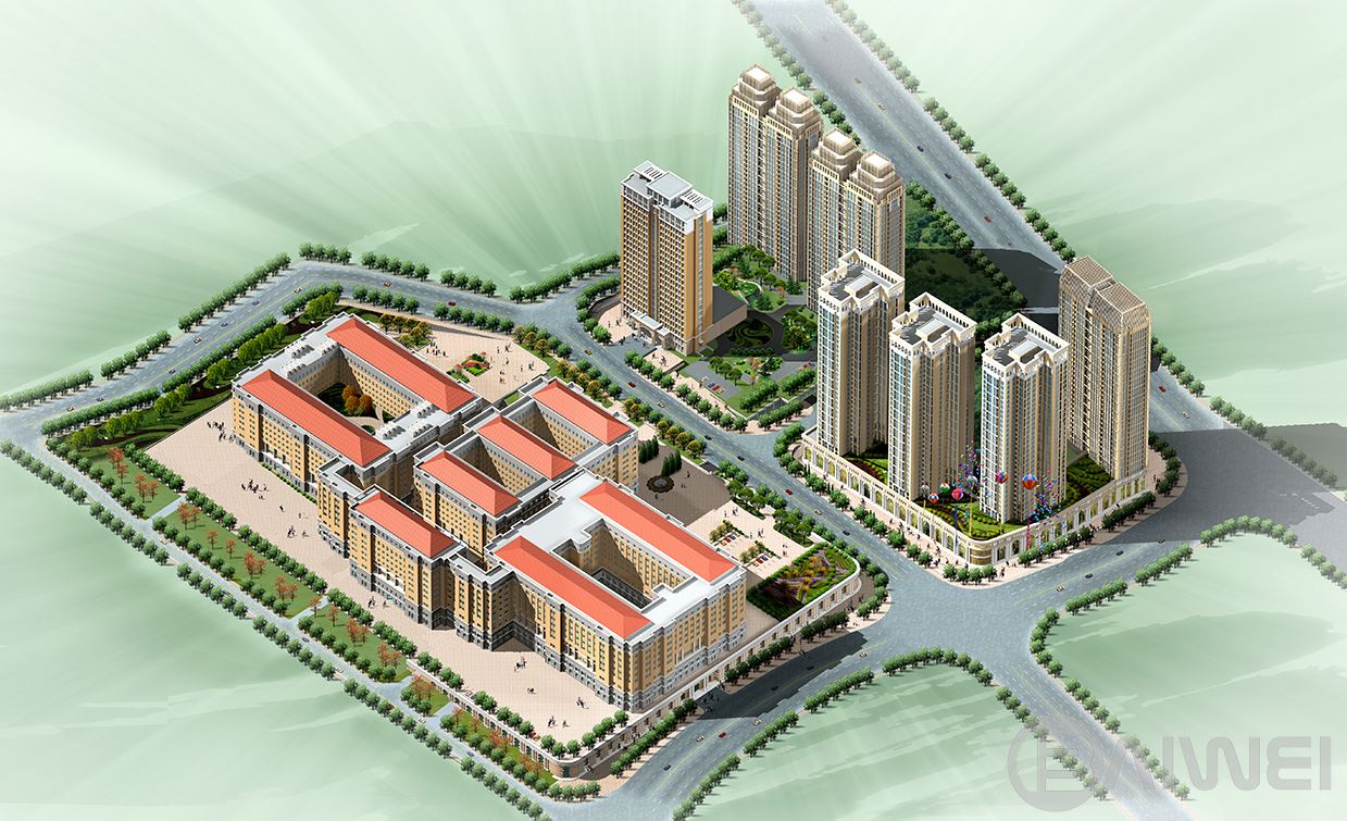 地塊A、B主樓主要采用明亮的淺暖色調(diào)及豎向線條的落地窗,與在建的銀都財(cái)富中心相協(xié)調(diào),裙房商業(yè)采用淺色與深色石材相間,并以歐式壁柱點(diǎn)綴,外觀簡(jiǎn)潔明快,同時(shí)與現(xiàn)有毓璜頂醫(yī)院建筑適當(dāng)?shù)暮魬?yīng)。地塊C延續(xù)了原有毓璜頂醫(yī)院的外觀風(fēng)格,主要以磚紅色面磚及灰色石材飾面,同樣采用了歐式裝飾柱與老建筑相呼應(yīng),使新老醫(yī)院建筑渾然一體。