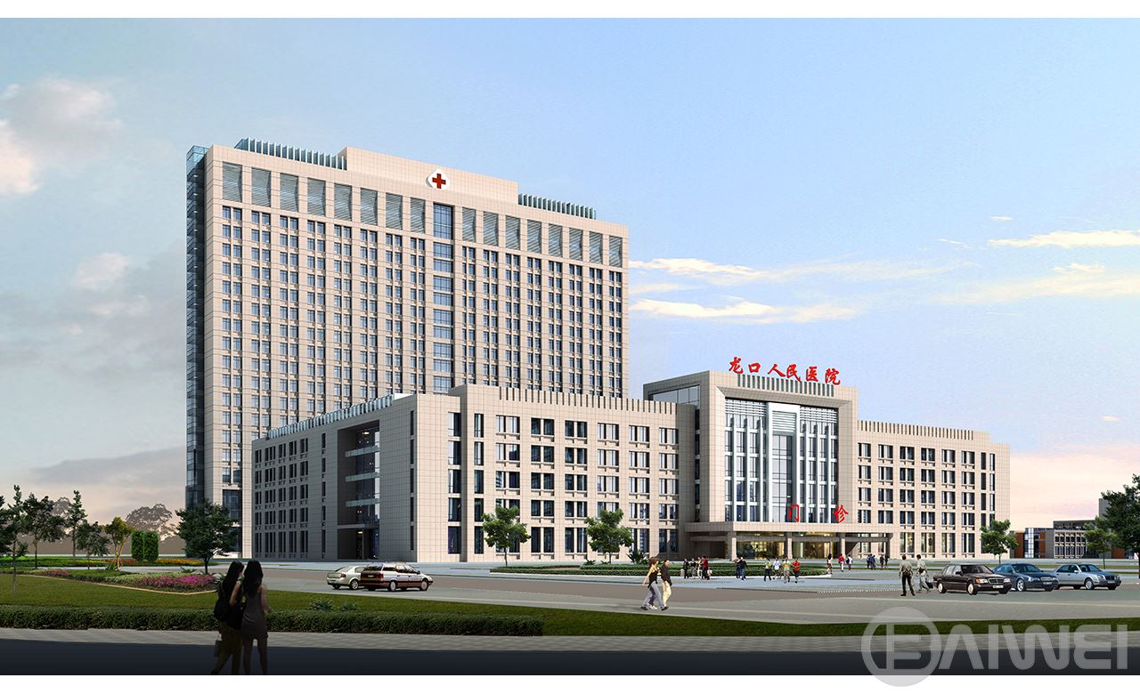 項目位于煙臺龍口市。一期工程為門診醫(yī)技樓和病房樓,建筑面積153478㎡;二期建設傳染病房、高壓氧艙、鍋爐房、能源中心、食堂宿舍等附屬用房,建筑面積9866m2。把“以病人為中心”作為首要原則,并把“以人為本”落實到實處,給患者創(chuàng)造一個輕松愉悅的就醫(yī)環(huán)境,以達到治病救人的目的。同時,充分考慮到醫(yī)護人員的工作環(huán)境,采取醫(yī)護走廊與就醫(yī)走廊分設的方法,體現(xiàn)出“以人為本”的設計理念,創(chuàng)造出人性化的醫(yī)院環(huán)境。