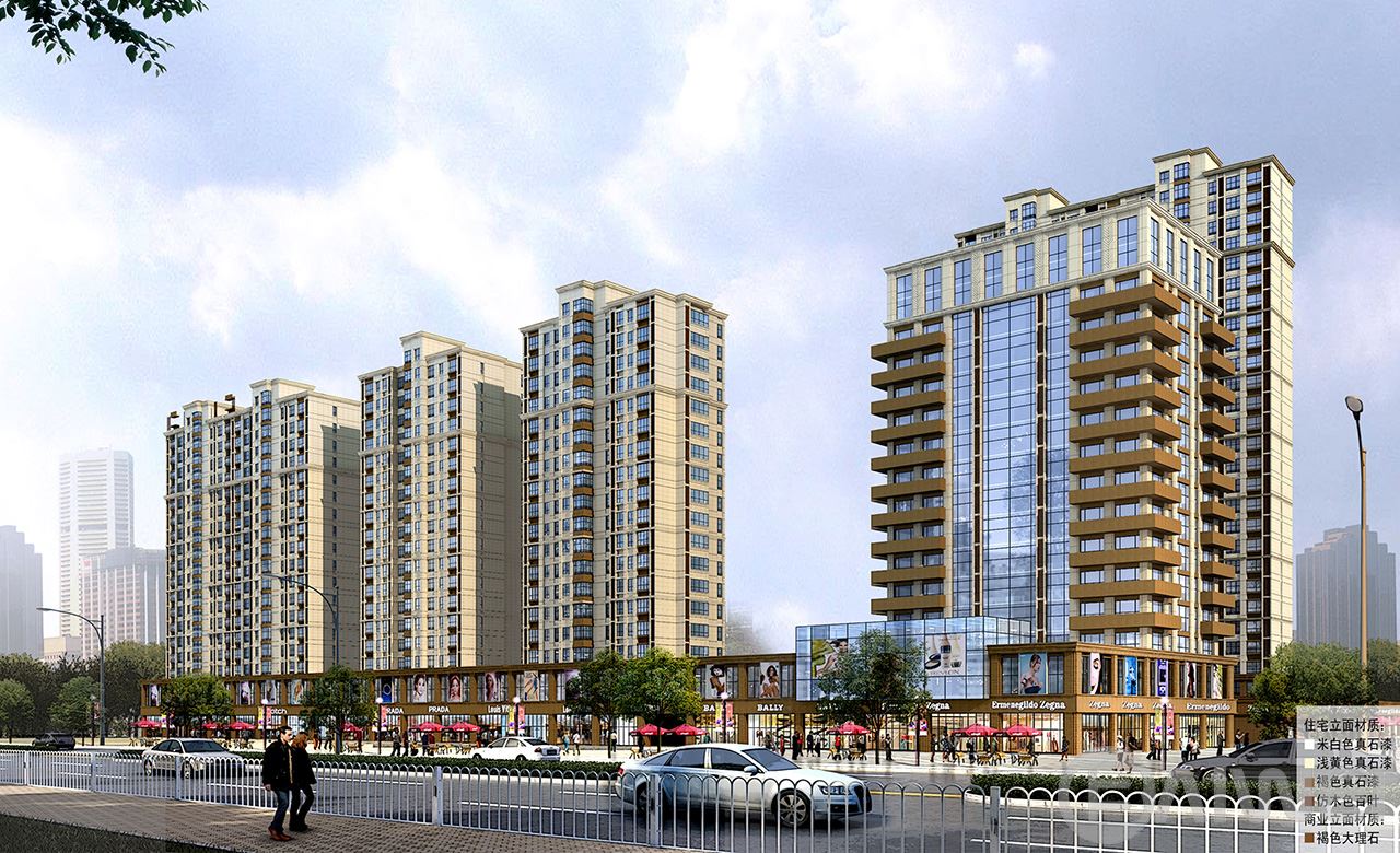 項(xiàng)目位于龍口市,包括15棟18~27層高層住宅、配套商業(yè)服務(wù)網(wǎng)點(diǎn)、會(huì)所及地下車(chē)庫(kù)。建筑單體立面設(shè)計(jì)注重塑造群體形態(tài)及可識(shí)別性,明朗、簡(jiǎn)潔的橫向線(xiàn)條和高聳挺拔的輪廓結(jié)構(gòu),強(qiáng)調(diào)建筑的高聳感。底部局部干掛石材與真石漆相結(jié)合。