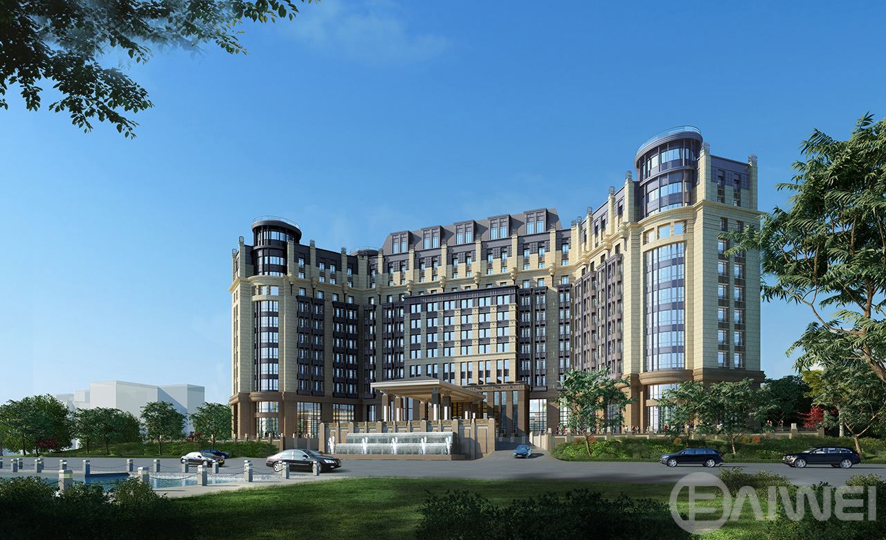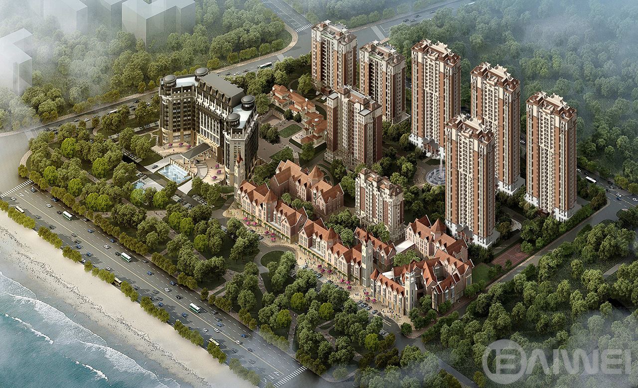 建設(shè)內(nèi)容包括1棟11層五星級酒店,8棟15~28層商住樓,3棟3~4層商業(yè)、2棟4層度假酒店樓,3棟2層酒店客房樓,2棟地下車庫,共19個單位工程。