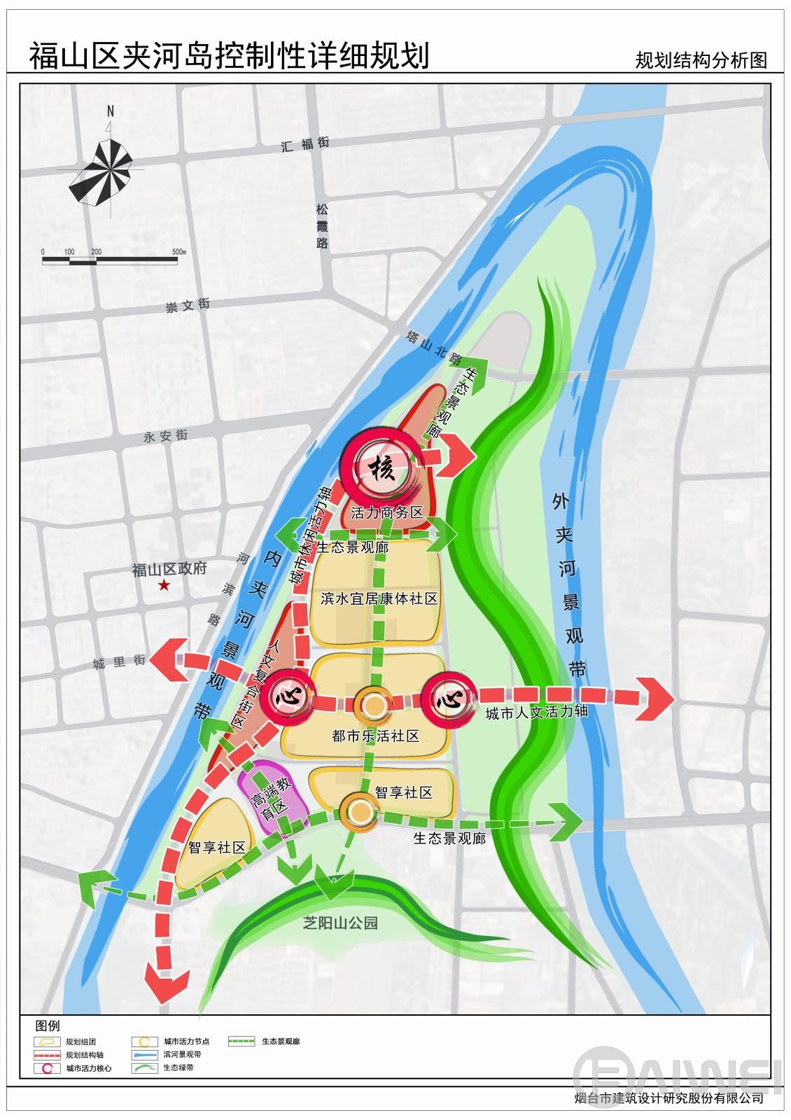本項目位于煙臺市福山區(qū)東部夾河新城片區(qū),規(guī)劃范圍西至內夾河東岸,北臨內外夾河交匯處,東接水源地保護線,南至港城西大街,總用地面積約1.05平方公里。規(guī)劃以生態(tài)功能為依托、集智慧創(chuàng)新、文化功能于一體形成煙臺市西南商業(yè)中心、煙臺生態(tài)魅力智慧島;集商業(yè)商務、文化創(chuàng)意、旅游休閑、生活居住四大功能為一體的煙臺市夾河新城中心。